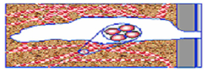 涂料砂随携砂液通过射孔炮眼首先进入空洞﹑孔道处,由于流速突降形成堆积架桥,并逐渐堆满缝隙、射孔孔眼,而不同用途的携砂液,则进入油层深部。