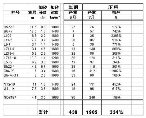 胜利油田部分压裂防砂井效果统计